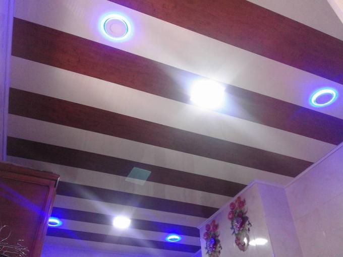 این سقف پی وی سی تصویب چاپ به عنوان درمان سطح. تمام سطوح سقف پلاستیکی به وسیله چسب رول تشکیل شده است. این چسب پس از حرارت دادن و درمان UV، بخشی از سقف پلاستیکی می شود تا آن را براق، درخشان.